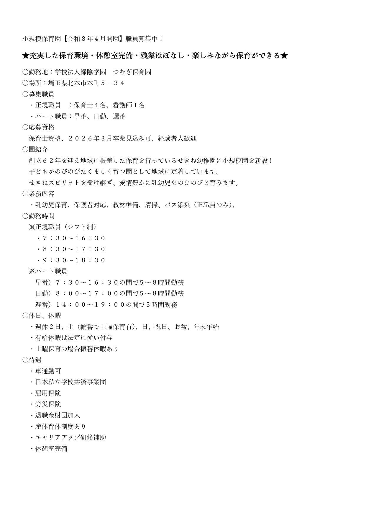 令和8年4月スタート!つむぎ保育園(小規模保育園)